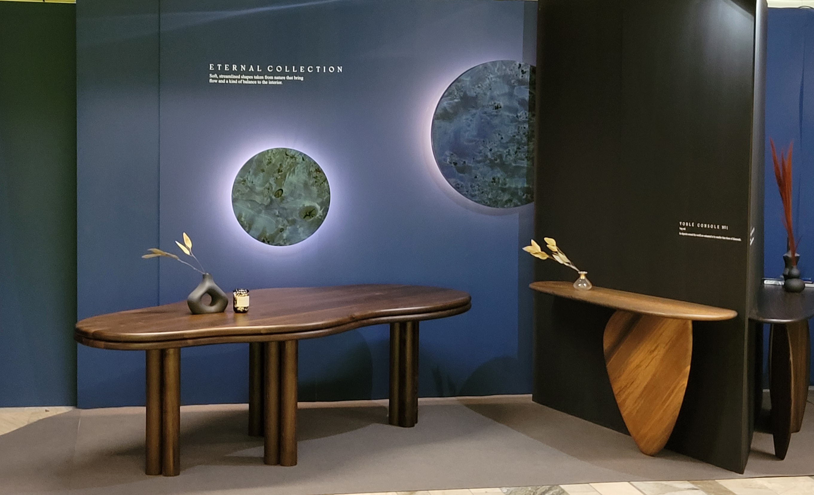 Podczas Stockholm Furniture Fair 2023 zaprezentowaliśmy naszą najnowszą Eternal Collection – kolekcję mebli inspirowanych naturą, jej płynnymi liniami i organicznymi formami. Stoły i konsole wykonane z najwyższej jakości drewna wyróżniają się miękkimi, rzeźbiarskimi kształtami oraz głębią naturalnych wybarwień.